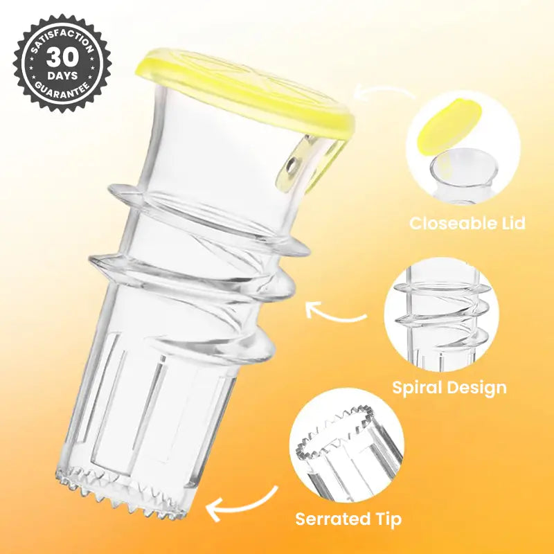 Meet CitrusBuddy™ — the original, patent-pending citrus juicer that gets every last drop of juice without knives, cutting boards, or messy pulp.