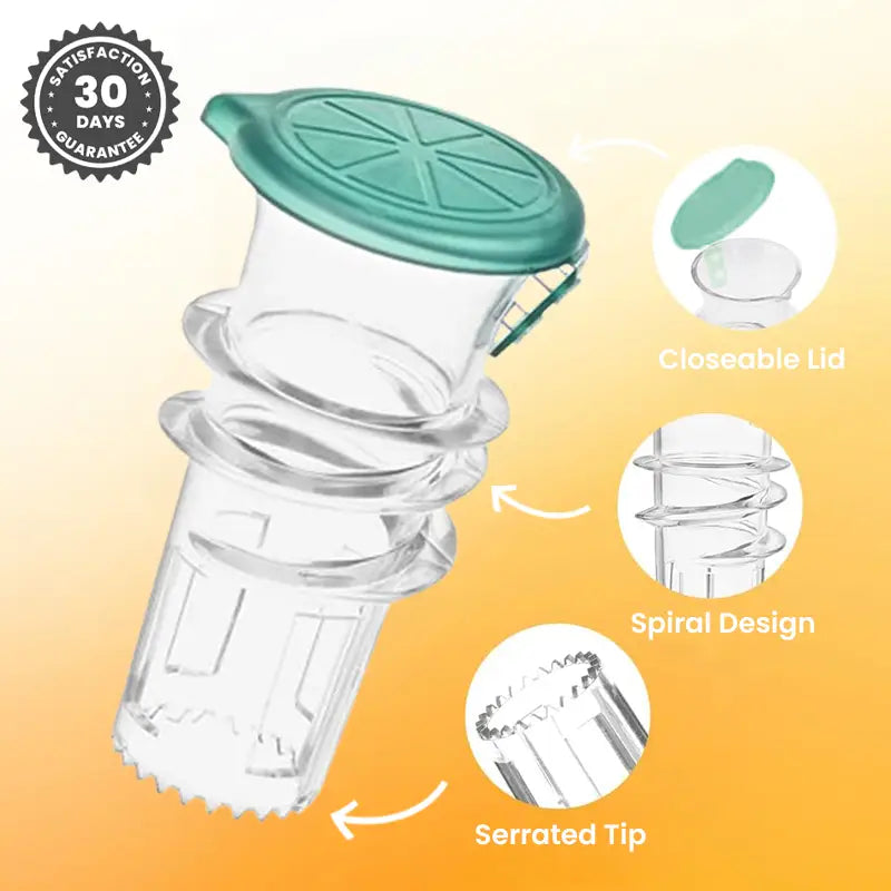 No knives. No cutting boards. No complicated juicers. Just insert the fruit, squeeze, and enjoy pure, seed-free juice.